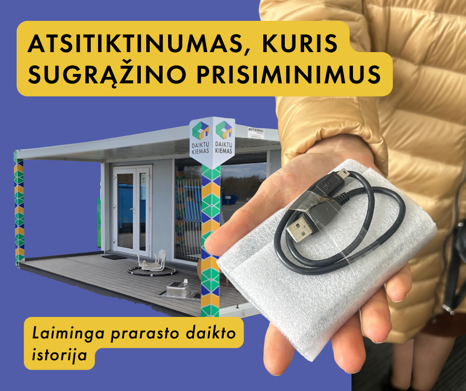 Tokia istorija nutiko Šiauliuose, dalijimosi daiktais stotelėje „Daiktų kiemas“. Tarp krepšyje sudėtų laidų buvo pastebėtas juodas išorinis atminties diskas. Veiklos priežiūros ir organizavimo vyr. specialistė, pamačiusi įrenginį, įtarė, kad jis čia galėjo patekti per klaidą. Patikrinus turinį, vieno katalogo pavadinimas padėjo nustatyti savininkę, o internete radus jos kontaktus – su ja susisiekti.