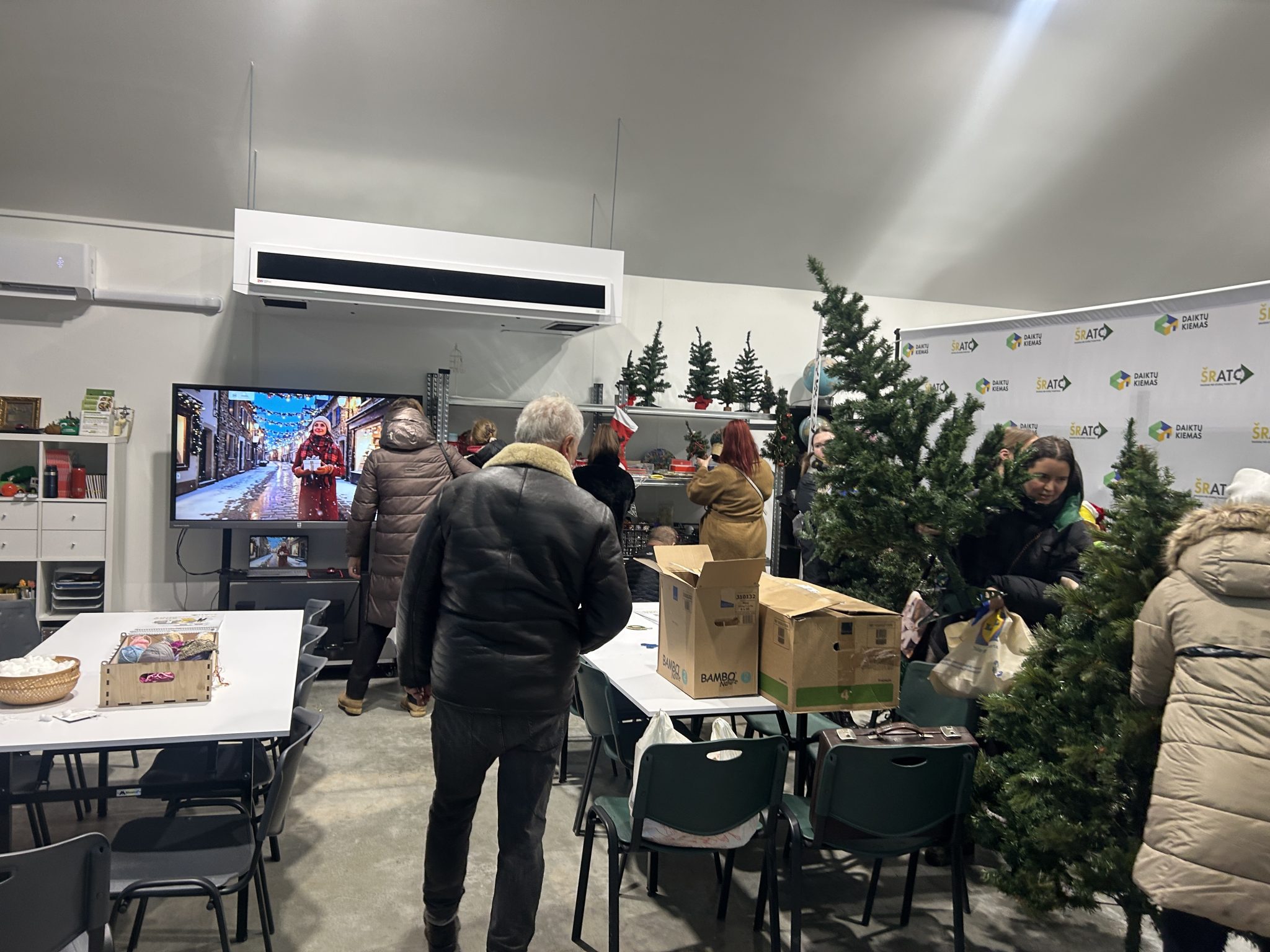 Dar prieš atsidarant durims, prie stotelės rinkosi žmonės su pilnais maišais ir dėžėmis. Vieni nešė kalėdinius žaisliukus, aksesuarus, indus, kiti – dirbtines eglutes, tekstilę, kojines, kepures, lempučių girliandas. Kiekvienas atsinešė dalelę savo namų šilumos.