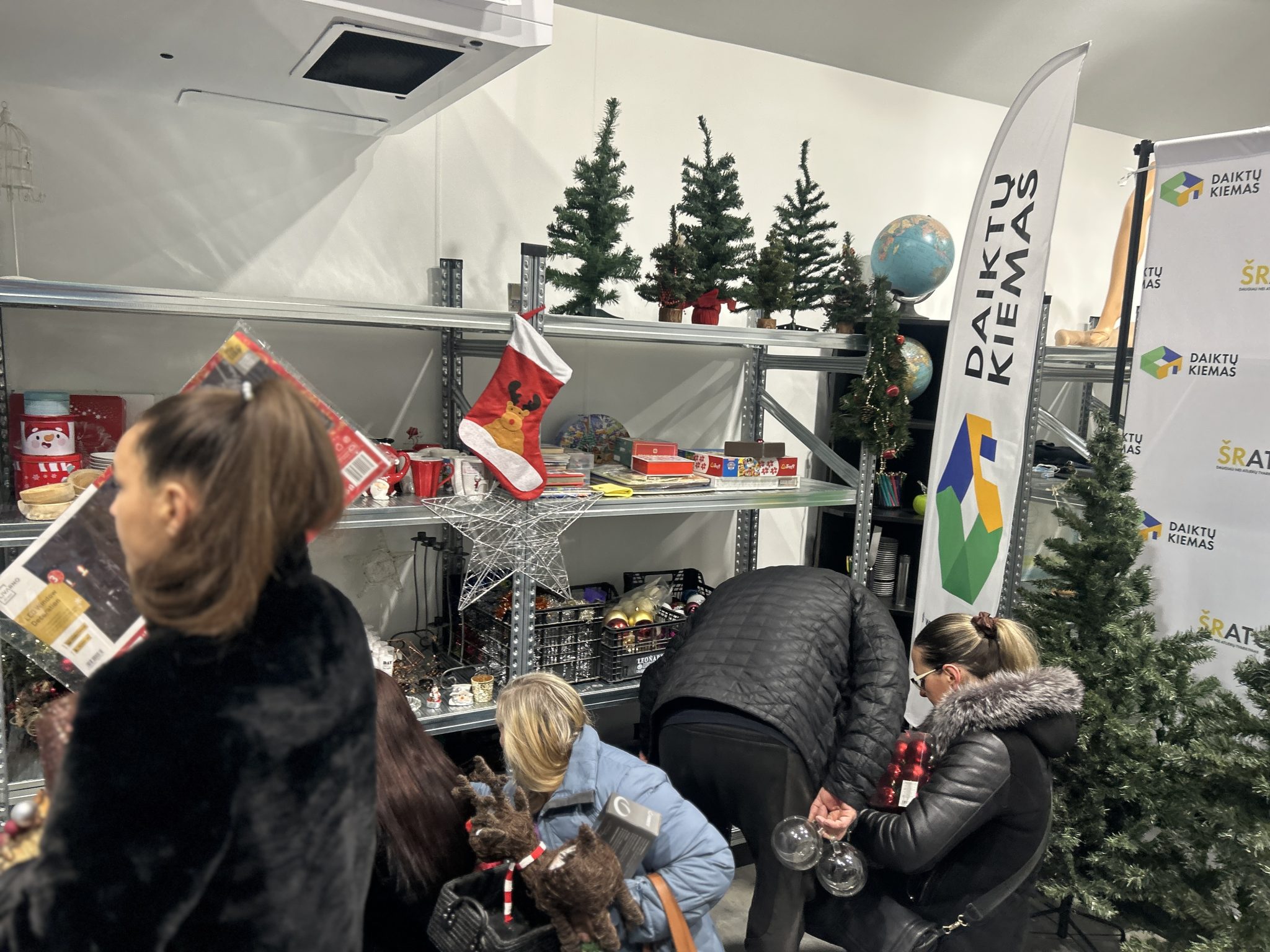 Nors eglutės ir didesnės dekoracijos buvo išgraibstytos jau per pirmą pusvalandį, lentynos tuščios neliko – jas nuolat pildė vis nauji tą dieną atnešti daiktai.